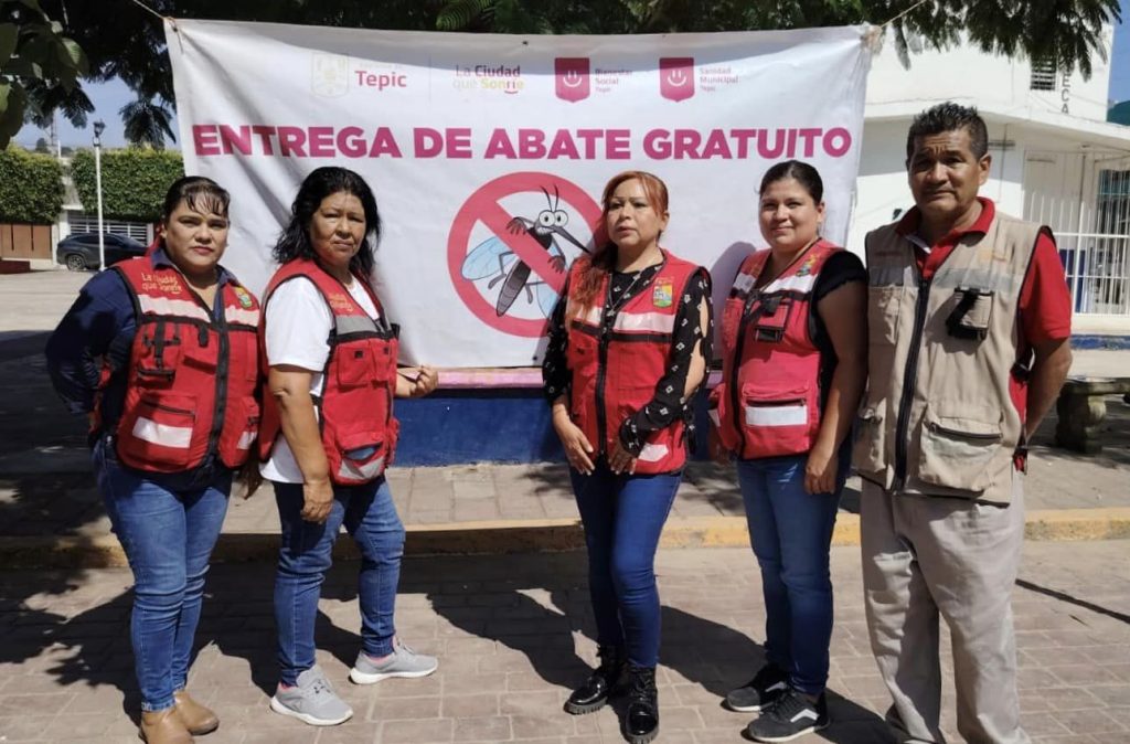 A fin de evitar la proliferación del Zika, Dengue y Chikungunya, la brigada de Sanidad Municipal de Tepic, entregó abate a las y los vecinos de la colonia Indeco, acudiendo también a los domicilios cercanos para concientizar e informar sobre su uso.