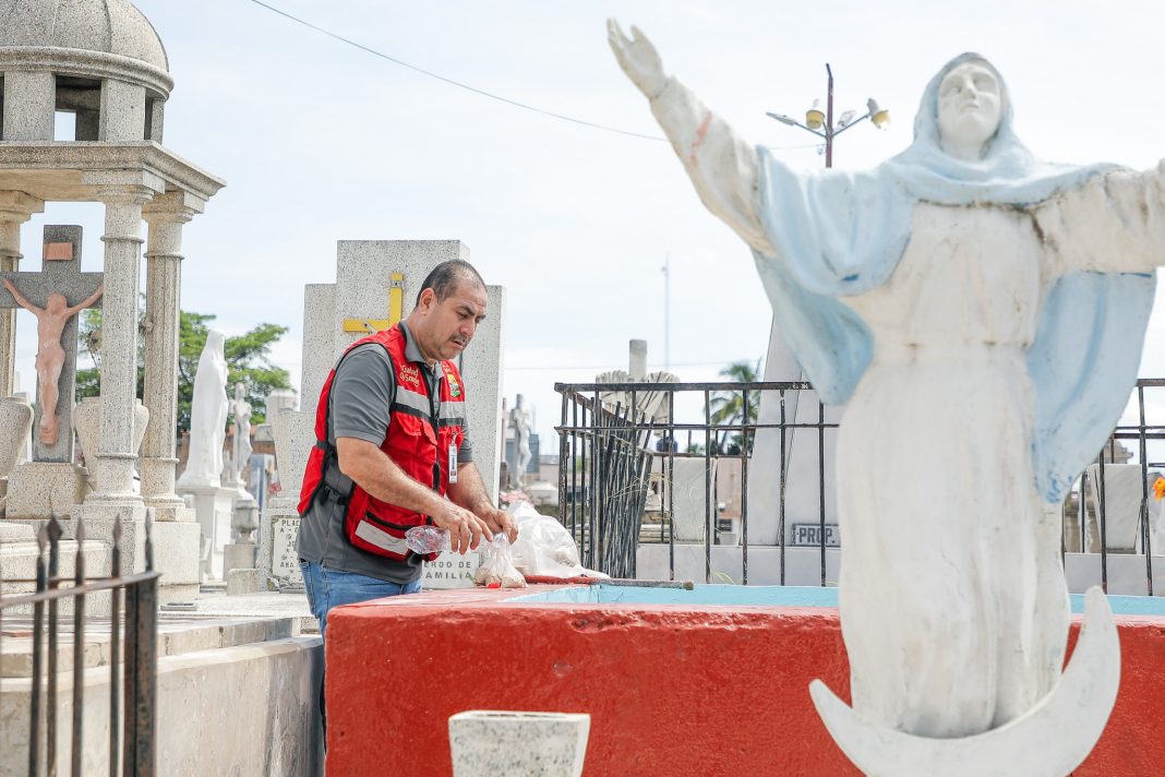 El Gobierno de Tepic, que encabeza la Lic. Leticia Araiza, continúa con el combate contra el mosquito transmisor del Dengue, Zika y Chikungunya, através de la abatización en espacios y monumentos del Panteón Hidalgo.