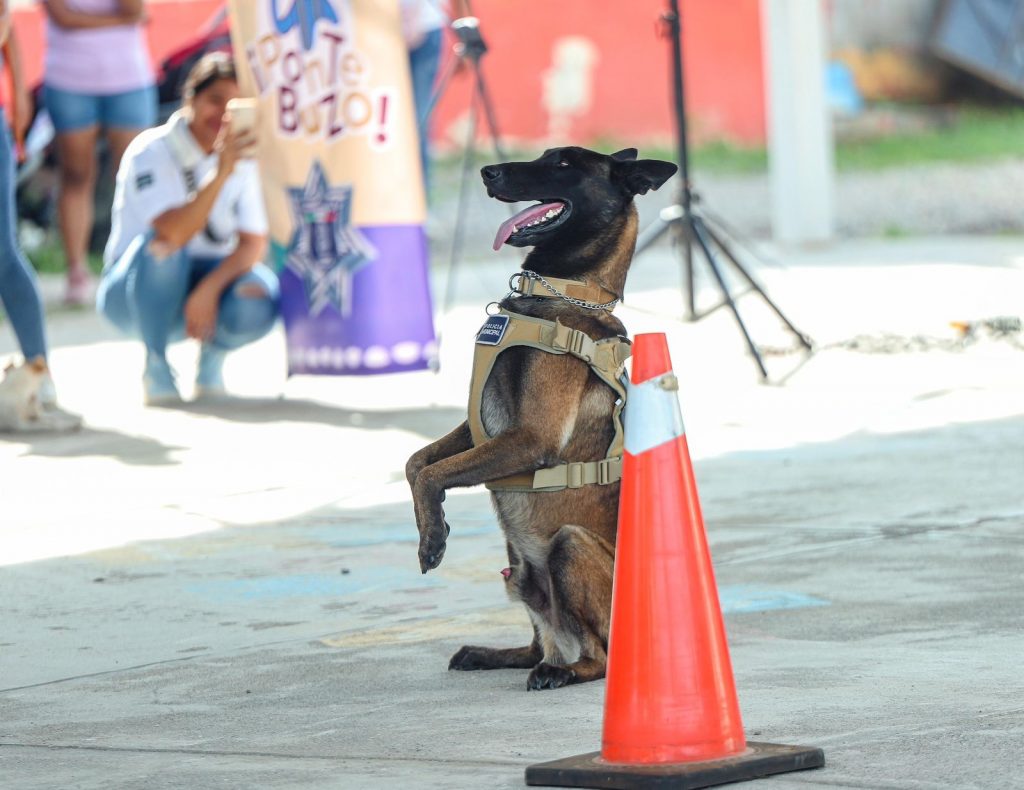 Uno de los momentos más esperados por los niños fue la exhibición de habilidades del oficial tercero José Rubén Almazán Robles, quien, junto con su compañero canino Robin, un perro policía con experiencia en múltiples operativos, demostró técnicas de detección y seguridad.