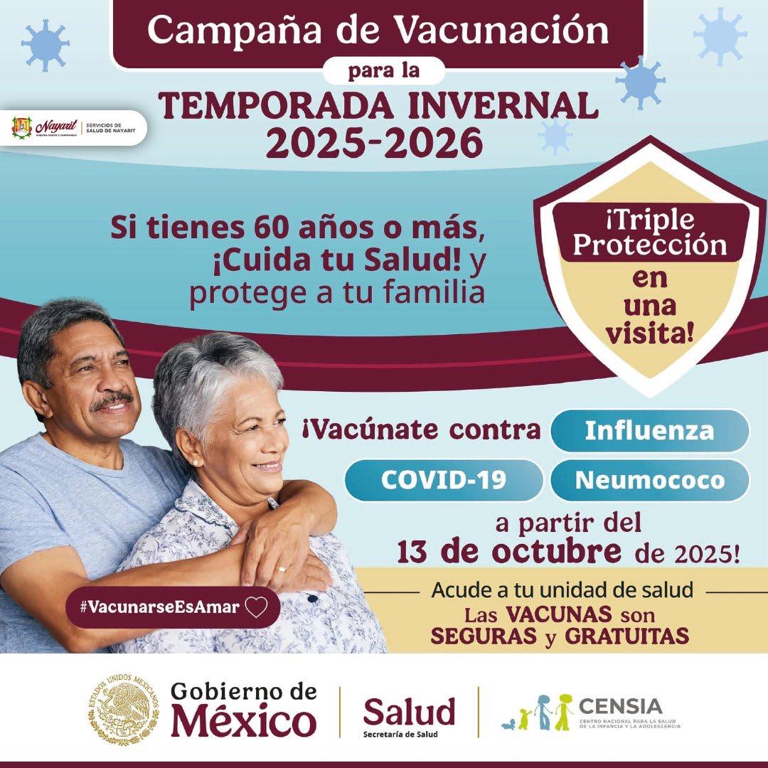 Los Servicios de Salud del Estado de Nayarit informaron sobre el desarrollo de la campaña de vacunación invernal dirigida a personas mayores de 60 años, con el objetivo de fortalecer la protección de este sector de la población ante enfermedades respiratorias.