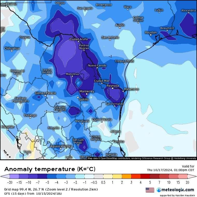 Finalmente, la masa de aire que impulsa el sistema frontal provocará un refrescamiento de las temperaturas en el norte, noreste, oriente y sectores del centro.