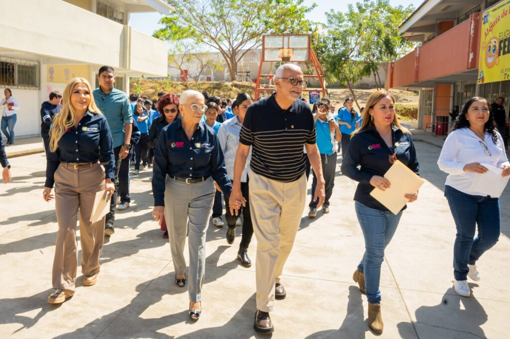 Tepic, Nayarit; 26 de marzo de 2026.– El gobernador del estado, Miguel Ángel Navarro Quintero, junto a la presidenta del Sistema DIF Nayarit, doctora Beatriz Estrada Martínez, encabezó el arranque del programa “Familias Fuertes: Amor y Límites” en la secundaria Eduardo Paz, en La Cantera, como parte de una estrategia para fortalecer el entorno familiar.