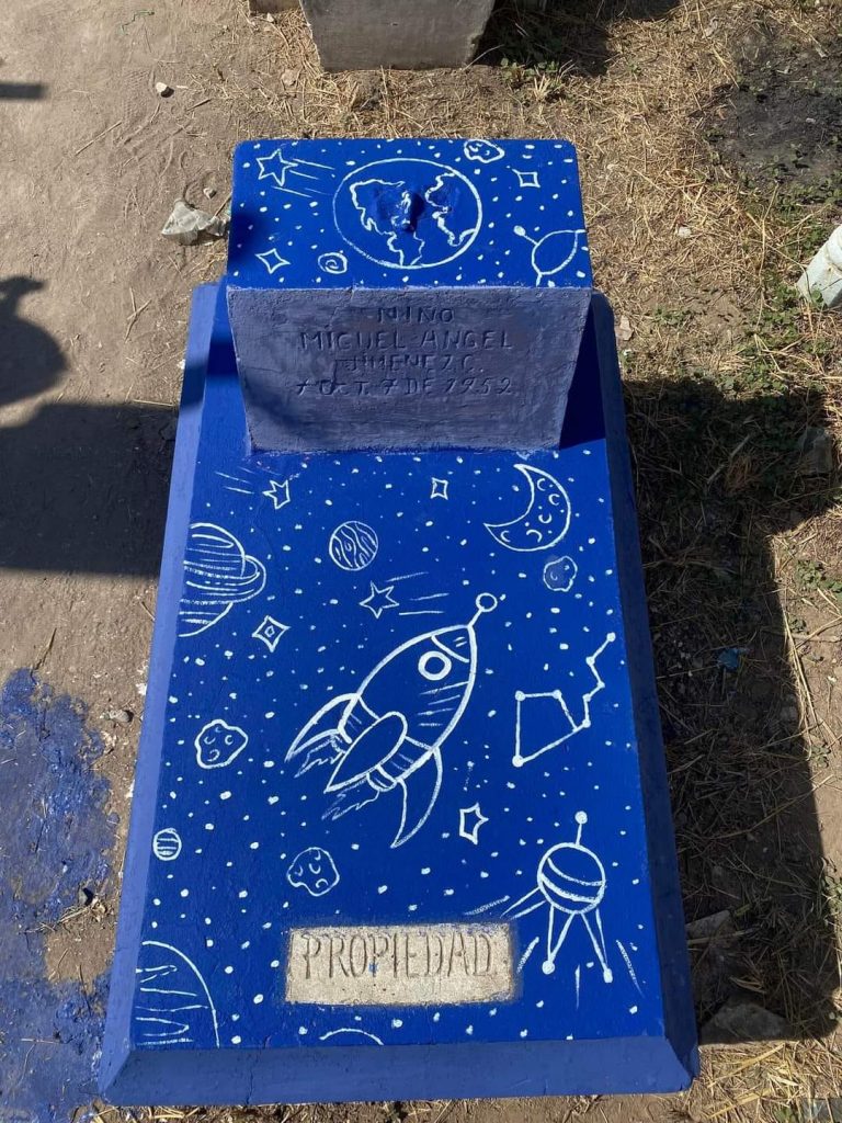 A través de redes sociales han circulado fotos de Miguel Delgado, un joven que pintó gavetas de algunos angelitos que se encontraban en total abandono en el panteón municipal de Santiago Ixcuintla.