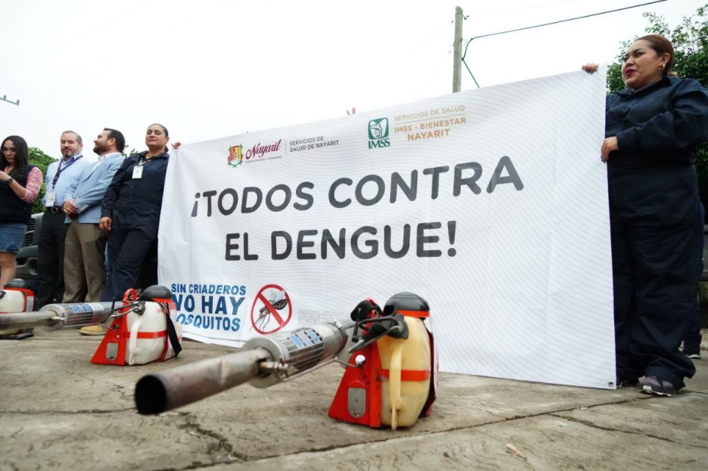 Y agregó, «queremos hacer un exhorto a las y los presidentes municipales que en el ámbito de su competencia son responsables, a que tomen el liderazgo y vayamos todos a descacharrizar cada una de las casas, de las comunidades, de las colonias, de las ciudades y todo el estado de Nayarit que es el ámbito de nuestra competencia política y de nuestra competencia sanitaria. Tenemos por fuerza que derrotar al dengue. De dos maneras, uno a través de factores de la prevención por la descacharrización y secundariamente complementar con la nebulización. Los productos que se utilizan para la nebulización son de altísimo costo, tenemos que optimizarlo».