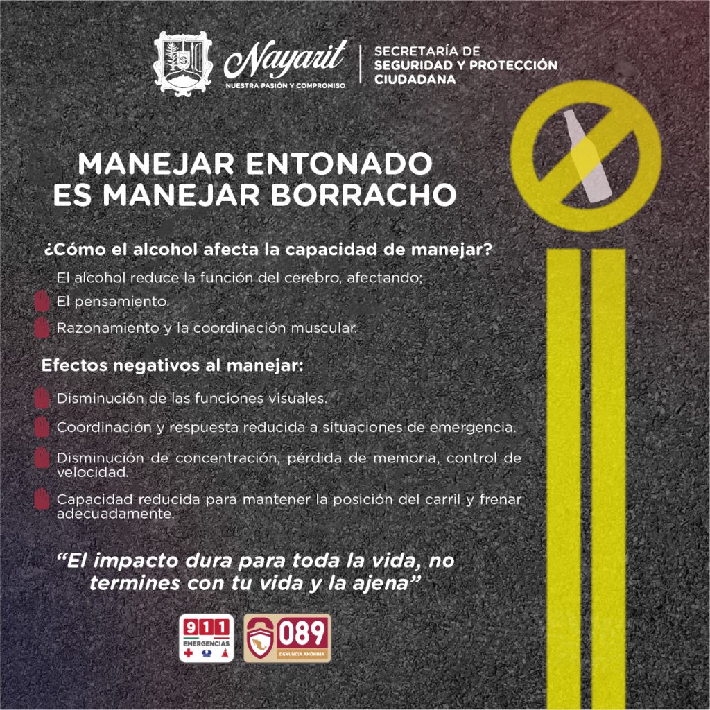 Con el objetivo de prevenir accidentes y proteger la integridad de la ciudadanía, autoridades de seguridad reiteraron el llamado a no conducir después de consumir alcohol, al advertir que manejar “entonado” es equivalente a manejar bajo los efectos de bebidas alcohólicas.