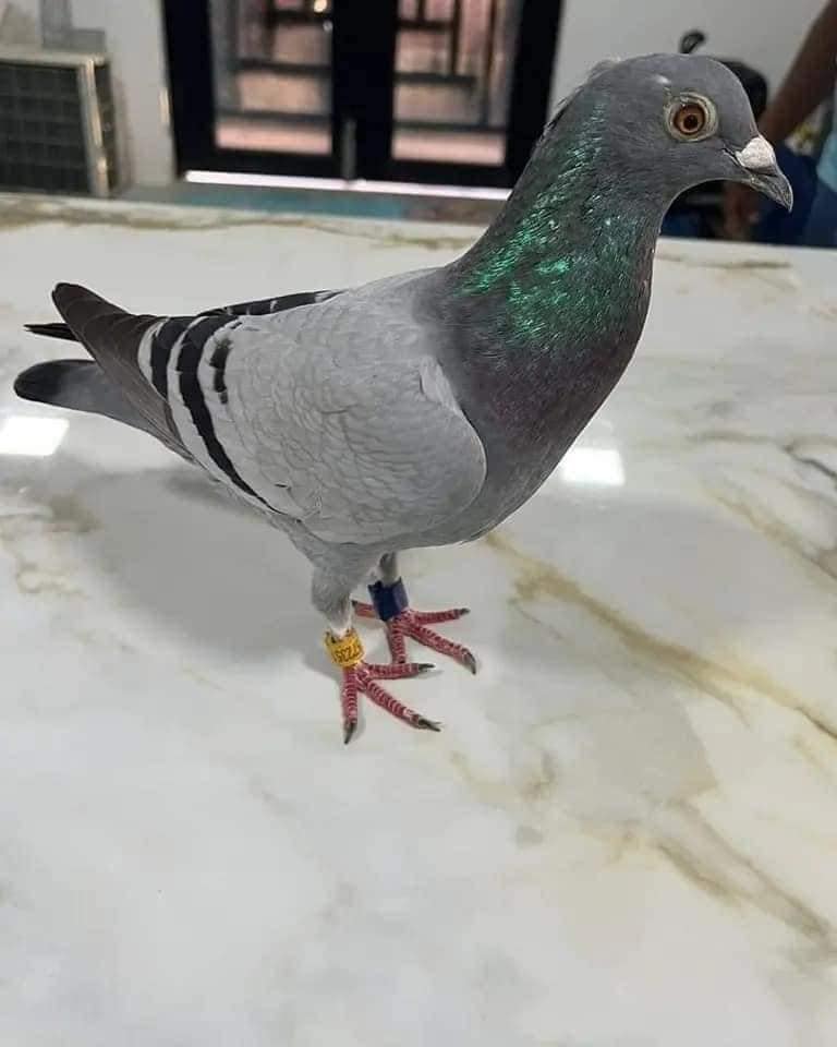 El ave cuenta con dos anillos en las patas de la paloma, uno amarillo y otro negro, además de un pequeño código inscrito en su pata izquierda junto con lo que parecía ser un microchip de identificación.