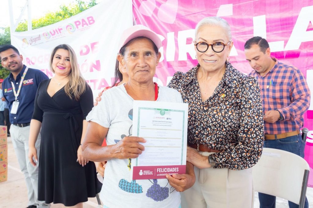 “Por eso es que estamos viniendo a cada municipio, porque queremos estar con ustedes, porque queremos que sientan que el gobierno del estado y el DIF estatal está atento a cada uno de ustedes, que tengan la seguridad que aunque están lejanos, no están olvidados. Yo lo único que quiero decirles es que tengan la confianza, la tranquilidad, y que veamos, que con todo esto, los apoyos que se les entregan, pero sobre todo la capacitación y los cursos, el INEA, estamos dándoles a ustedes lo que necesitan para prepararse; entonces, preparémonos, capacitémonos y hagamos que nuestro presente sea el mejor que podamos tener para cada uno de nosotros”, enfatizó la doctora Beatriz Estrada Martínez.