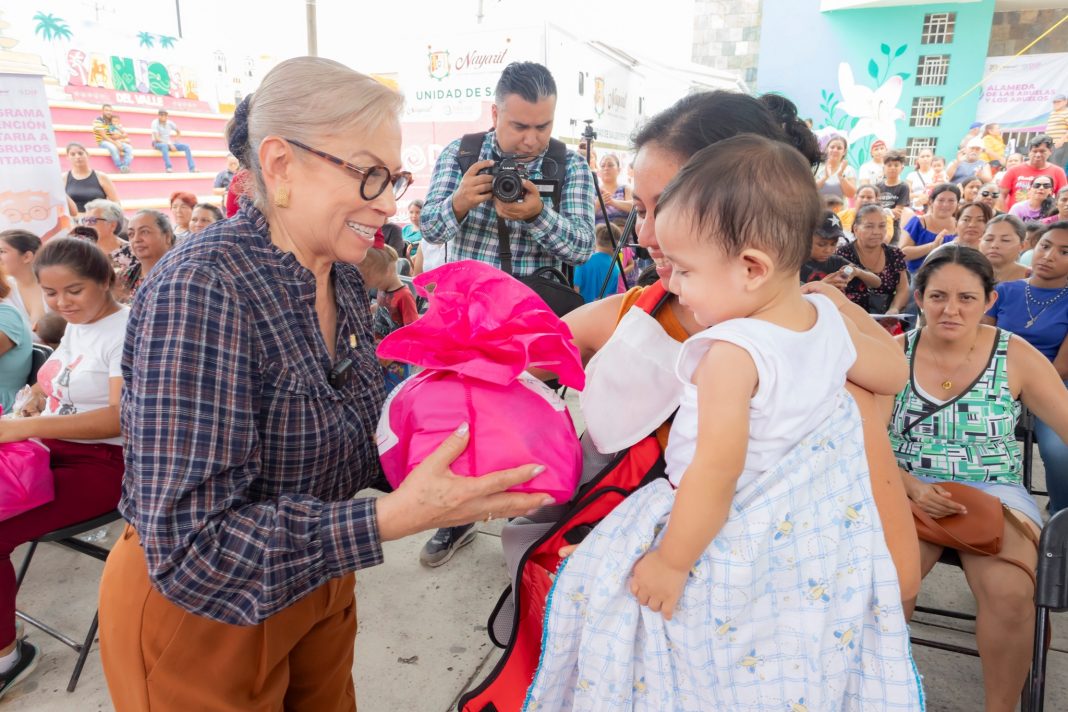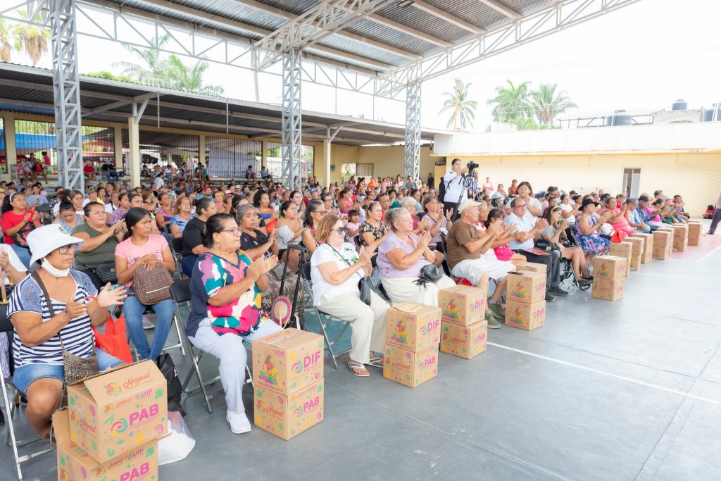 Bahía de Banderas, Nayarit; 1 de agosto de 2024.- La doctora Beatriz Estrada Martínez, presidenta del Sistema DIF Nayarit, encabezó la gira “Latidos del Corazón”, en la localidad de San José del Valle, del municipio de Bahía de Banderas, en la cual se ofrecieron servicios y actividades gratuitas a más de 300 familias; además, entregó mil 940 dotaciones alimentarias en beneficio de otras 970 familias, de los programas 1000 Días, Atención a Grupos Prioritarios y —en la comunidad de San Vicente—, del Programa de Alimentación para el Bienestar (PAB).