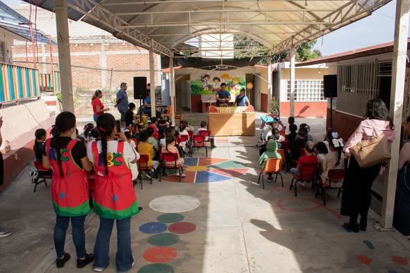 La compañía Tianguis Teatro presentó una función en el preescolar Preescolar Carlos Castilla García como parte del programa Artes Escénicas en la Escuela del Instituto Nacional de Bellas Artes y Literatura.
