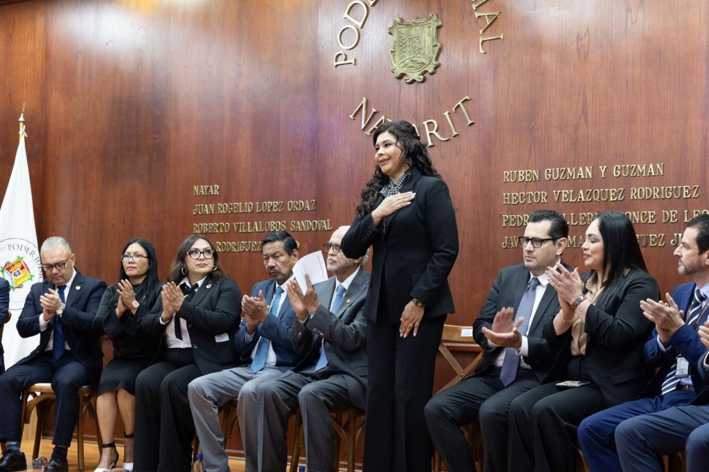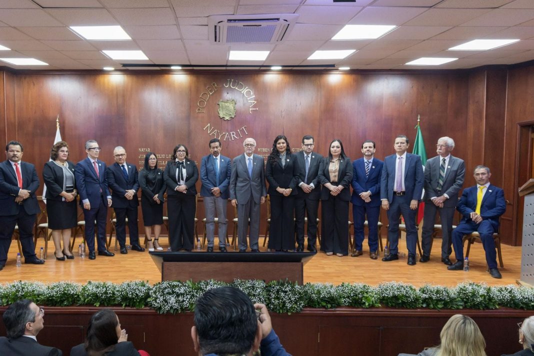 Dicho acto se efectuó en el auditorio Rey Nayar de la sede judicial, donde la magistrada Avalos Lemus destacó que con la colaboración de las 1087 servidoras y servidores judiciales, y con apoyo en la coordinación con los poderes Ejecutivo y Legislativo del estado, “el Poder Judicial de Nayarit dio un importante paso en el ejercicio de la función jurisdiccional, asumiendo retos y compromisos que han permitido consumar una nueva era de justicia, una justicia con rostro humano, que nos ha posicionado a un año de distancia como una institución transparente, confiable, garante del acceso a la tutela judicial efectiva, a la altura de la expectativa social de las y los nayaritas”.