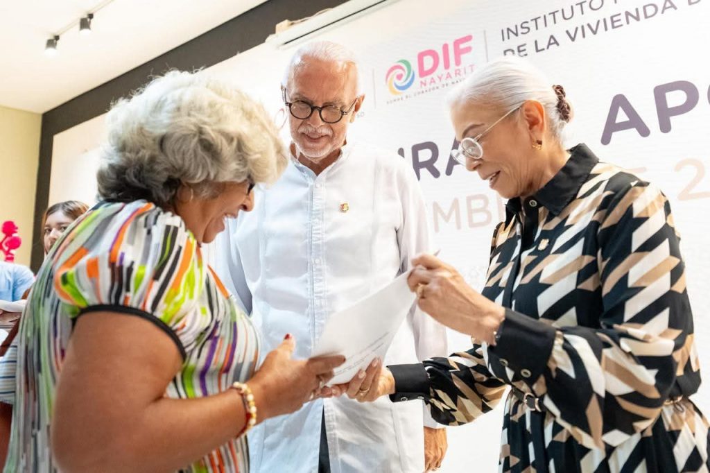 Por su parte, la doctora Beatriz Estrada Martínez, presidenta del DIF Nayarit, expresó su agradecimiento por ser partícipe de un acto que representa certeza, seguridad y tranquilidad para las familias beneficiadas.