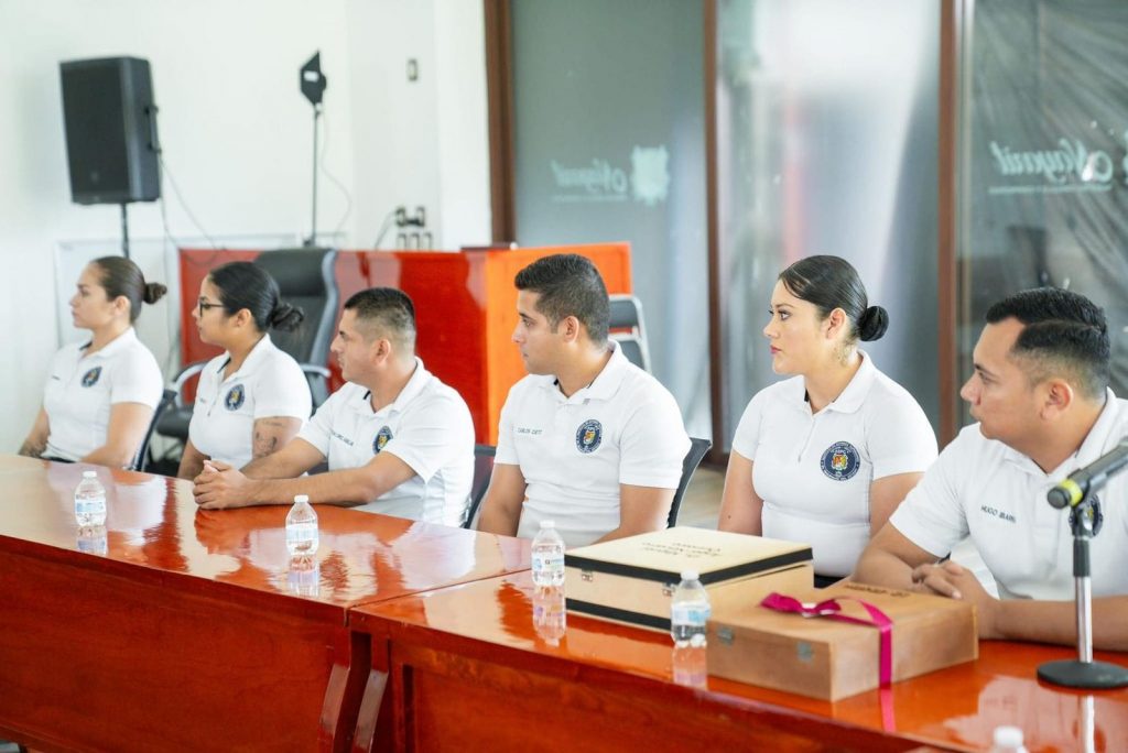 El secretario de Seguridad y Protección Ciudadana, Manases Langarica Verdín, presentó a estos hombres y mujeres que, además de fortalecer sus conocimientos teóricos y prácticos, los aplican día a día en el territorio, elevando la calidad de la seguridad en cada grupo especializado al que pertenecen. El funcionario estatal expresó que saber que 112 policías estatales están matriculados en cuatro generaciones activas de este programa le enorgullece profundamente, y reafirmó la responsabilidad que su administración ha adquirido de garantizar una formación integral y de excelencia para sus elementos, y que la meta es seguir aumentando este número.