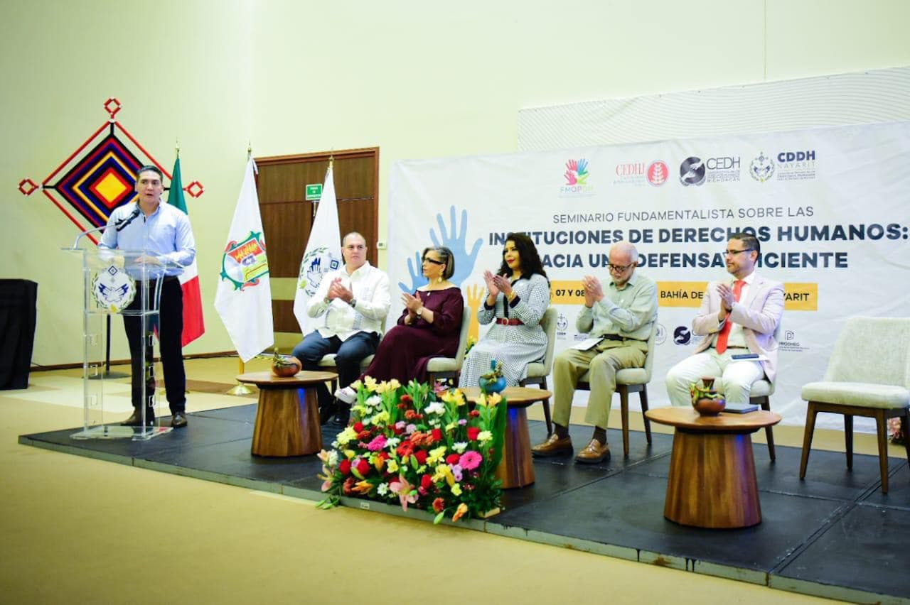 Uno de los compromisos fundamentales de la administración del gobernador del estado de Nayarit, Miguel Ángel Navarro Quintero, es la defensa de los derechos humanos. Por ello, este jueves asistió al «Seminario Fundamentalista sobre las Instituciones de Derechos Humanos: Hacia una Defensa Eficiente», llevado a cabo en el Hotel Escuela Gran Nayar de la Universidad Tecnológica de Bahía de Banderas.