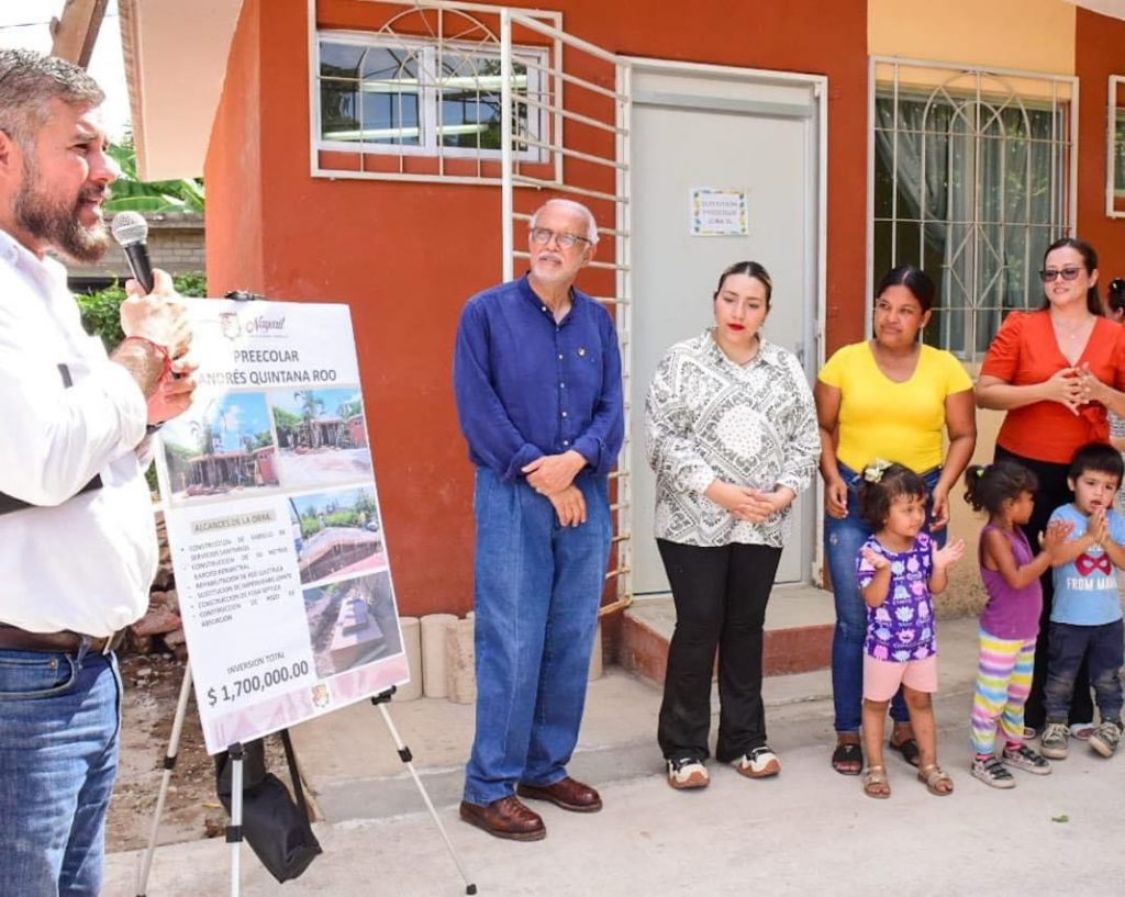 El gobernador del estado, Miguel Ángel Navarro Quintero, este domingo realizó una gira de trabajo por el municipio de Tecuala, donde supervisó los trabajos que el gobierno a su cargo lleva a cabo en el preescolar Andrés Quintana Roo.