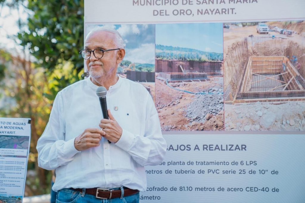 En la localidad de Colonia Moderna, del municipio de Santa María del Oro, el gobernador del estado, Miguel Ángel Navarro Quintero, supervisó la construcción de la Planta de Tratamiento de Aguas Residuales, misma que tiene una inversión de casi 15 millones de pesos, y beneficiará a más de 800 habitantes.