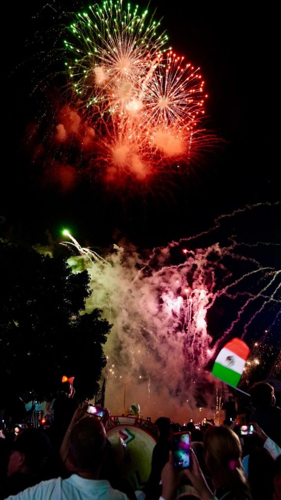 La celebración incluyó fuegos artificiales, verbena popular, antojitos mexicanos gratuitos y música tradicional, además de la presentación estelar de La Sonora Dinamita, que puso el ritmo a la noche mexicana.