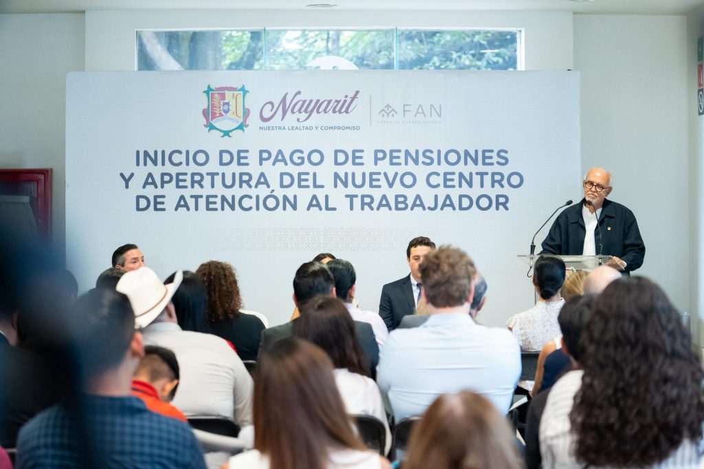 Tepic, Nayarit, 10 de septiembre de 2025.- Este miércoles, el gobernador del estado de Nayarit, Miguel Ángel Navarro Quintero, encabezó el inicio del pago de pensiones y la apertura del nuevo Centro de Atención al Trabajador del Fondo de Ahorro Nayarit (FAN). Durante el evento, se destacó que, gracias al esfuerzo y respaldo de la administración estatal, las y los trabajadores nayaritas cuentan hoy con un futuro financiero sostenible y seguro.