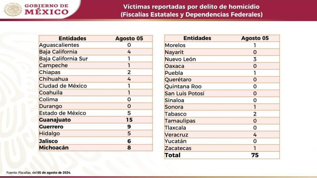 El gobierno del estado, Miguel Ángel Navarro Quintero informó que Nayarit ha mantenido un registro de cero homicidios dolosos, de acuerdo con los datos proporcionados por el Centro Nacional de Planeación, Análisis e Información para el Combate a la Delincuencia (CENAPI), un resultado que es testimonio del esfuerzo coordinado entre los tres niveles de gobierno en materia de seguridad y prevención. El gobernador del estado, Miguel Ángel Navarro Quintero, reafirmó el compromiso de las autoridades en la lucha contra la violencia y en la preservación de la tranquilidad en el estado.