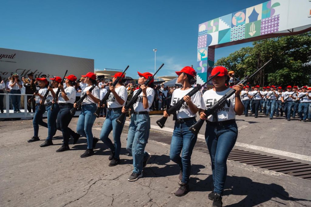 El recorrido partió del bulevar Tepic-Xalisco, donde miles de familias salieron a disfrutar del paso de contingentes civiles, escolares y militares que, durante más de una hora, mostraron disciplina, unidad y respeto a los símbolos patrios.