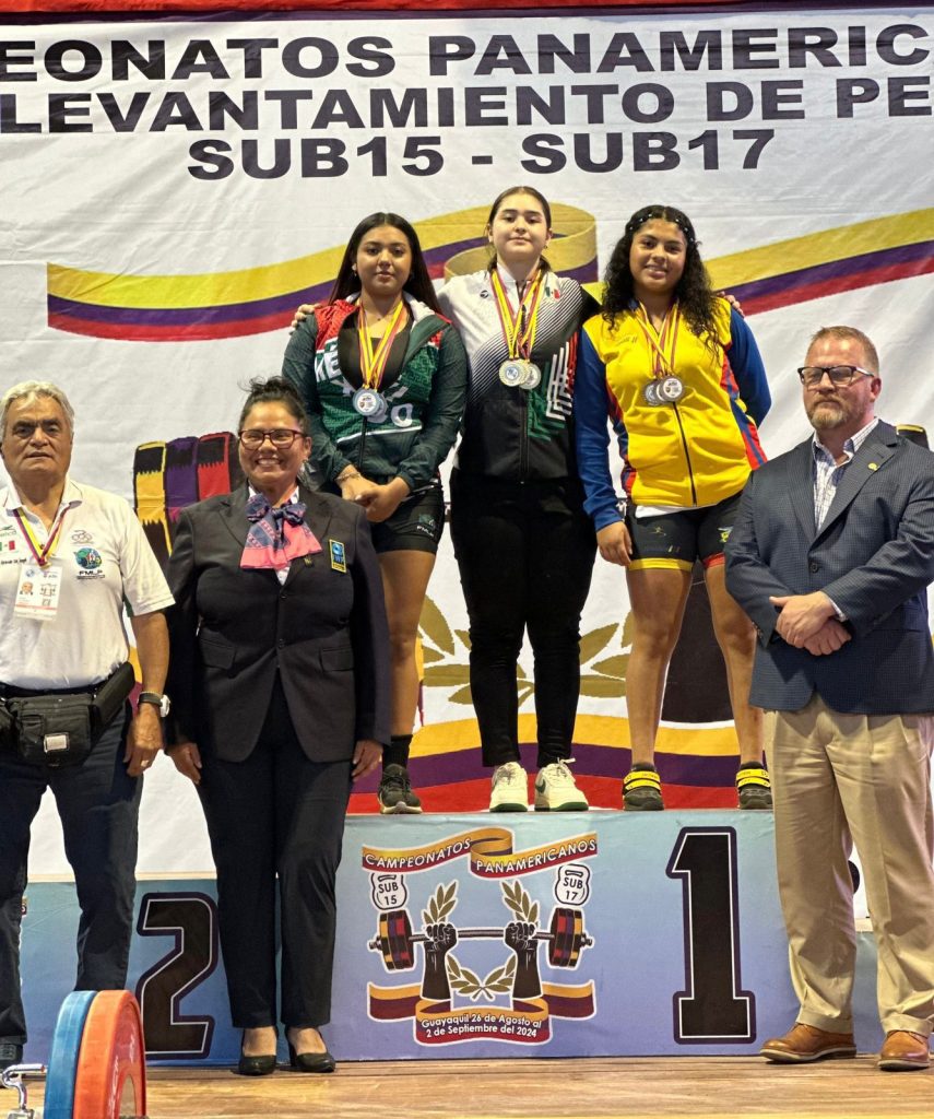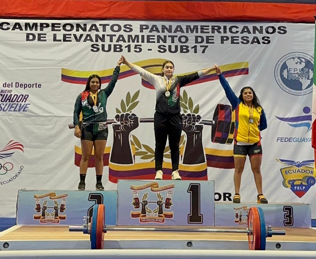 Guayaquil, Ecuador; 31 de agosto de 2024.-La nayarita Valeria Alejandra Iñiguez Rosales, ganó tres medallas de oro para México, consagrándose como campeona absoluta en el Panamericano Juvenil de Levantamiento de Pesas, que se llevó a cabo en Guayaquil, Ecuador.