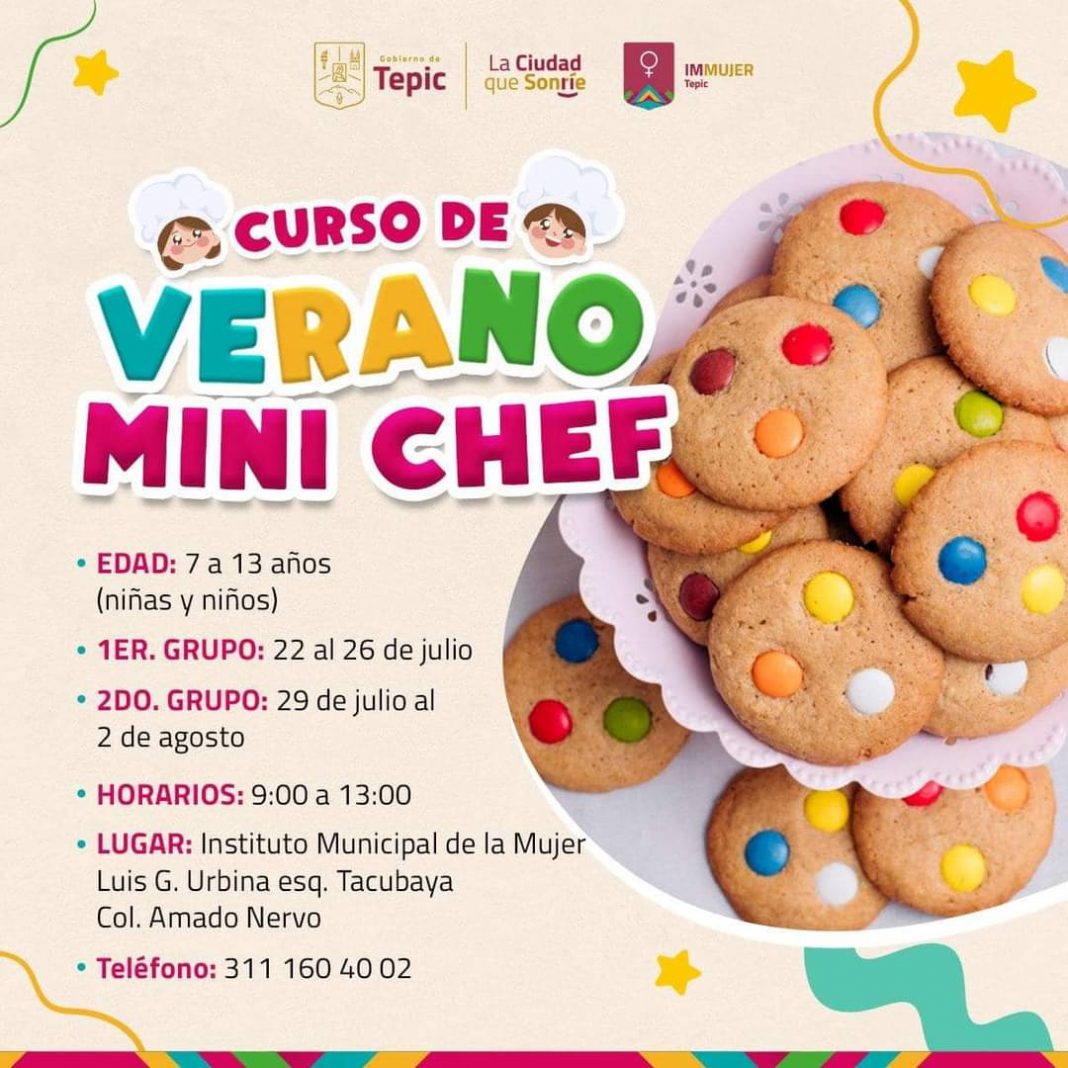 El curso de verano Mini Chef, que organiza el Gobierno de Tepic; está dirigido niñas y niños de 7 años de edad en adelante, el cual inicia este 22 de julio del presente año. Para más información llama al 311-160-40-02.