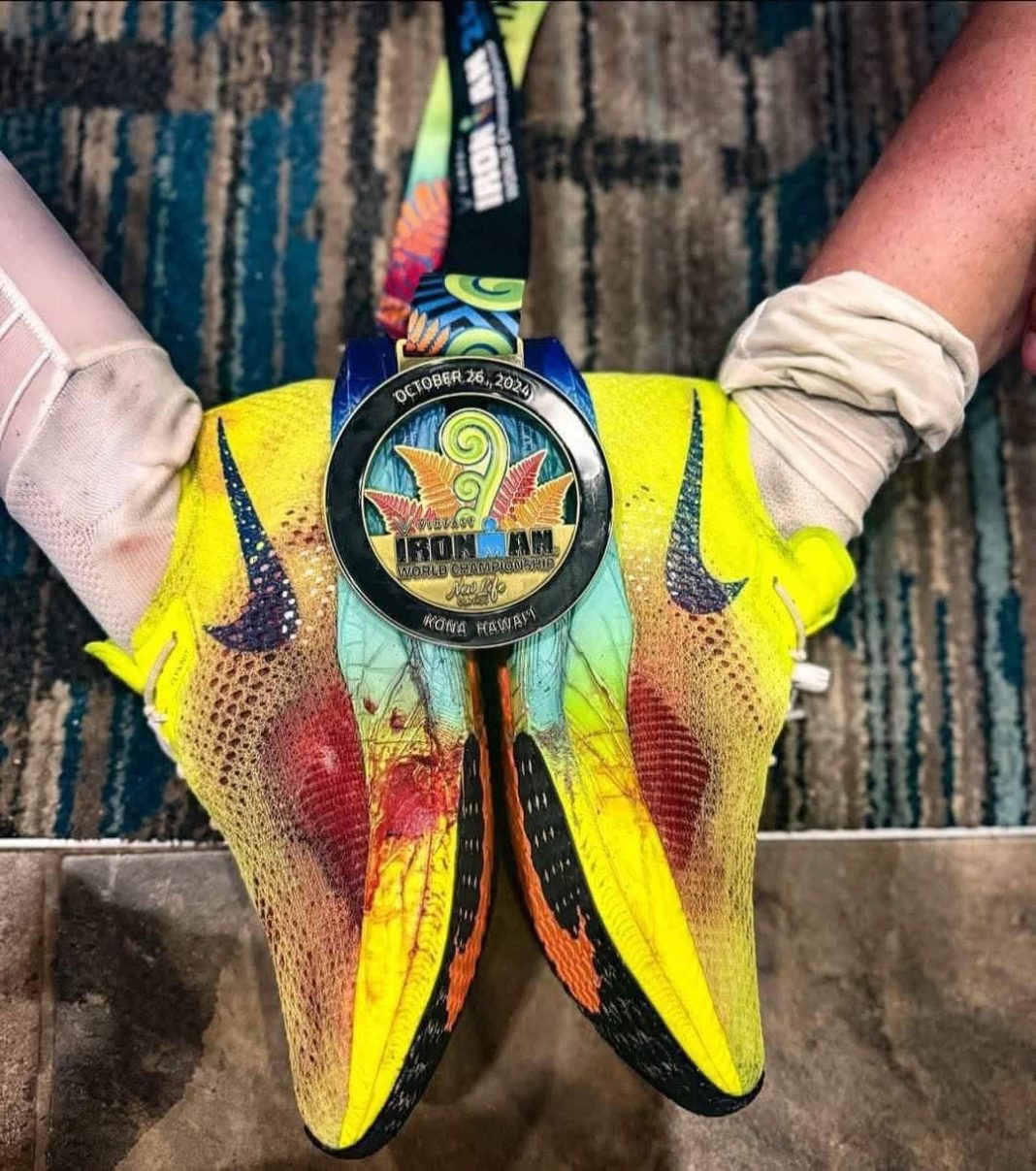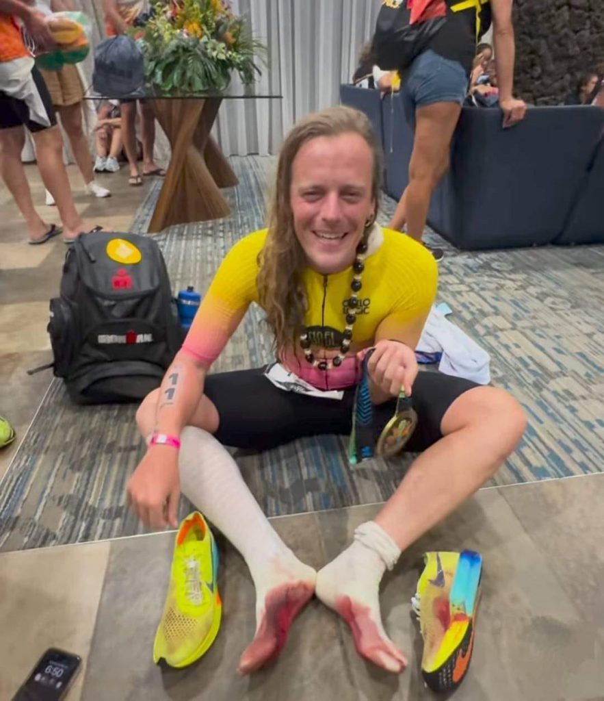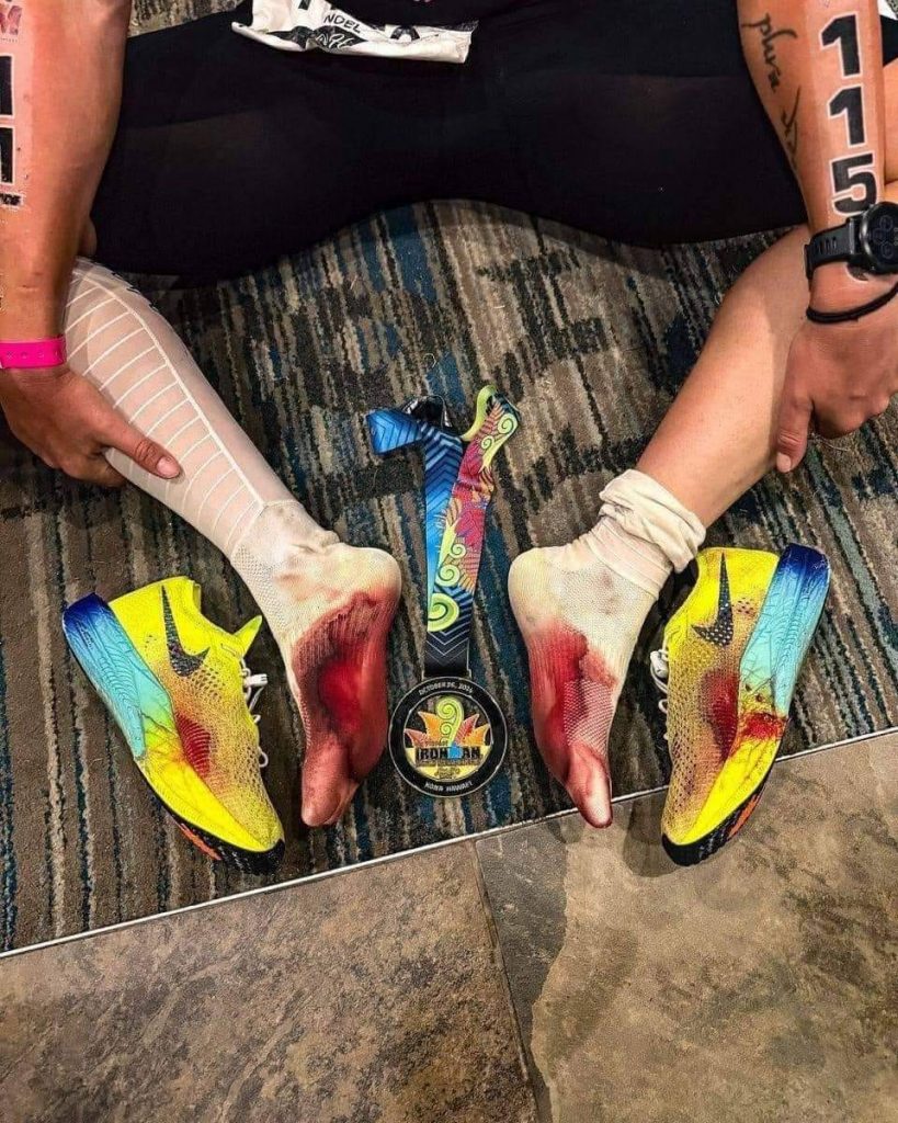 Así finalizaba el triatleta Noel Mulkey el Maratón del IRONMAN World Championship con un tiempo de 5:03.36, y con ambos pies ensangrentados.