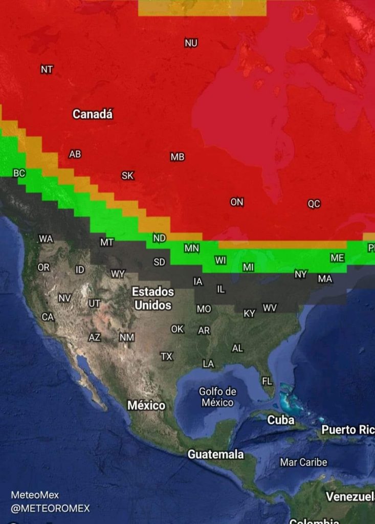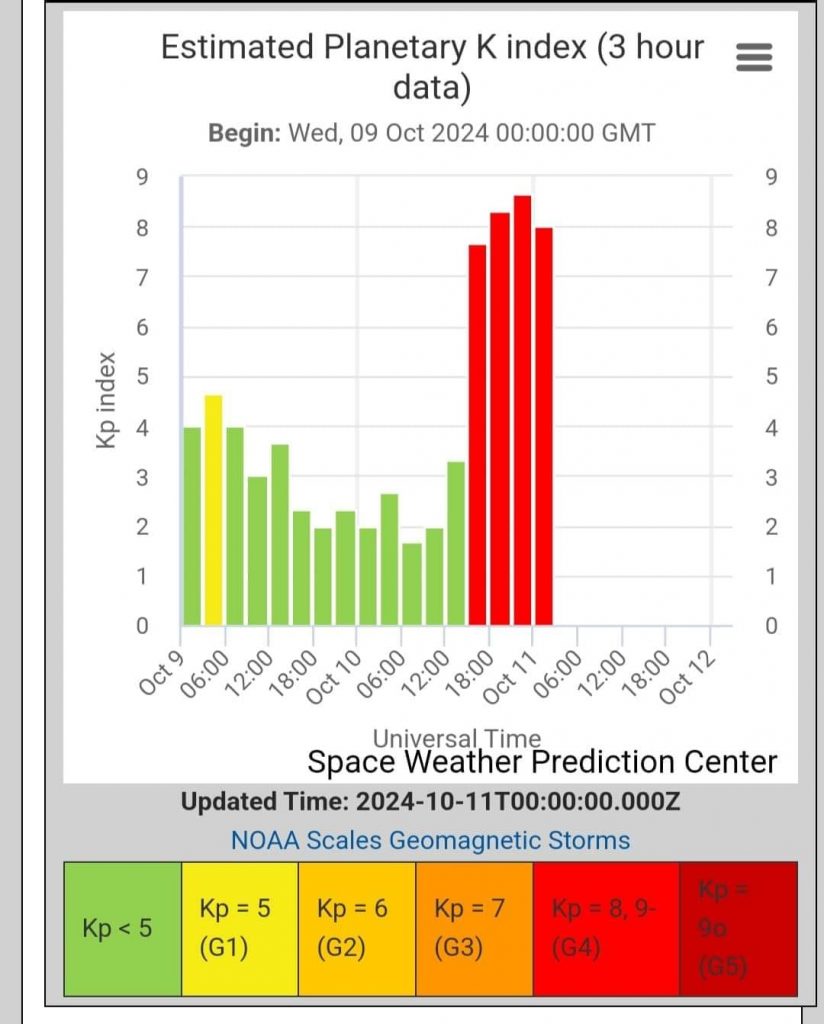 Debido a lo anterior, las condiciones son favorables para presentarse #AurorasBoreales en México; existe el potencial de presentarse una Tormenta extrema G5, por lo que se mantiene en vigilancia.