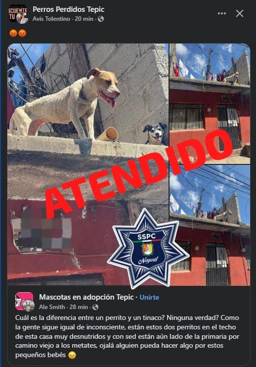 La Secretaría de Seguridad y Protección Ciudadana, a través de la Unidad de Análisis de Redes Sociales y la Policía Estatal Canina (K9), rescató a dos perros que presuntamente sufrían maltrato en la colonia Prieto Crispin de Tepic.