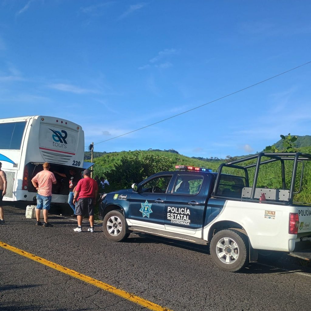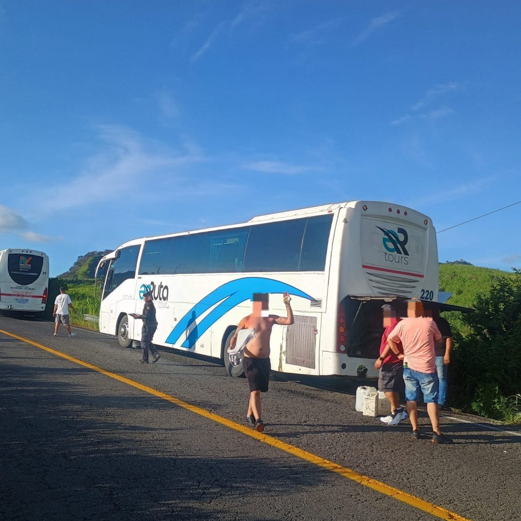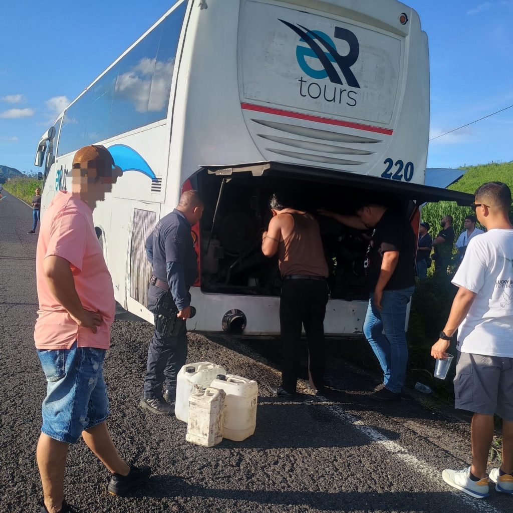 Durante el patrullaje de vigilancia que mantiene en las carreteras del estado, los agentes detectaron un autobús detenido, mismo que iba con destino de Puerto Vallarta a Guadalajara, Jalisco, por lo que le brindaron apoyo y auxilio vial.