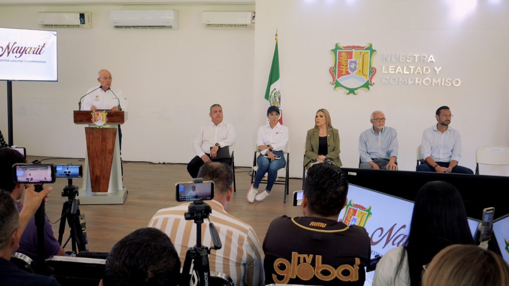 Tepic, Nayarit, 15 de abril de 2025.- En conferencia de prensa, el gobernador del estado de Nayarit, Miguel Ángel Navarro Quintero, informó sobre la situación del paro que desde este lunes por la tarde mantenían transportistas cañeros sobre el Libramiento Carretero y otros puntos de Tepic, pidiendo la libertad de uno de sus compañeros que en días pasados atropelló a un ciclista. El mandatario estatal informó que el procedimiento se desarrolla conforme a los principios del debido proceso, y con respeto al marco legal. Destacó que el propósito del gobierno del estado, fue llegar a un buen término en ese conflicto, partiendo de la premisa de no afectar a terceras personas.