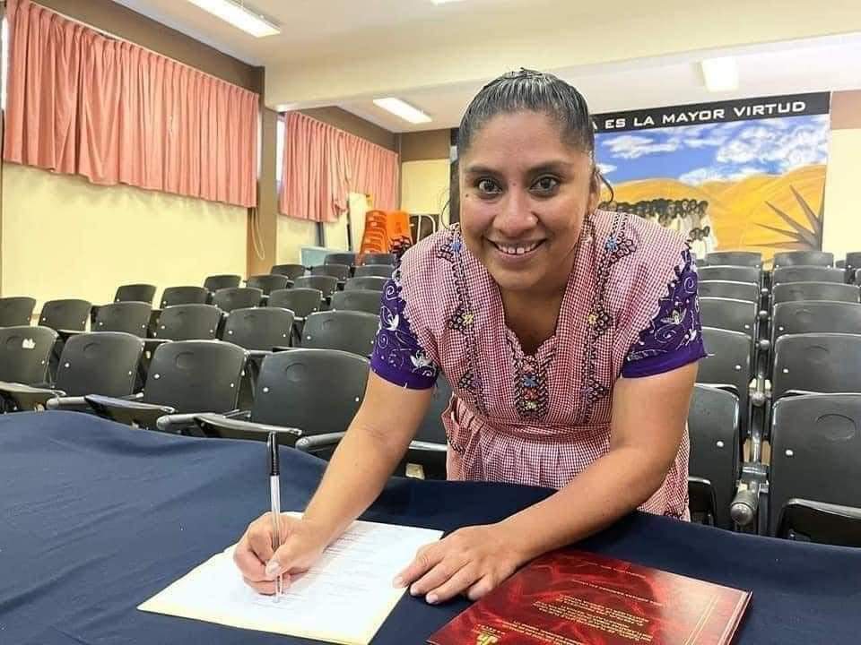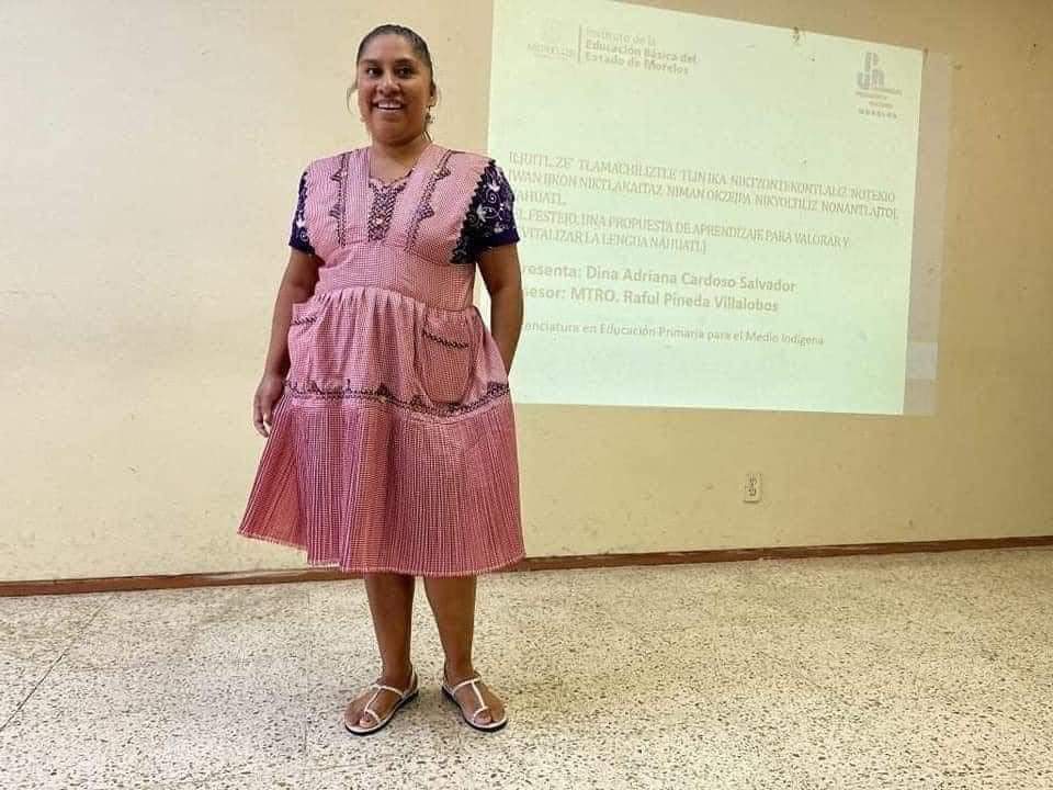 Dina Adriana Cardoso presentó su examen profesional en Náhuatl, siendo todo un éxito y logrando graduarse, así que ya puede presumir su título como licenciada en Educación Primaria para el Medio Indígena, la tesis lleva por nombre: ‘Iljuitl, ze’tlamachiliztle tlin ika niktzontekontlaliz notekio iwan ijkon niktlakaitaz niman okzejpa nikyoltiliz nonantlajtol nahuatl’, que traducido dice: El festejo, una propuesta de aprendizaje para valorar y revitalizar la lengua Náhuatl”.