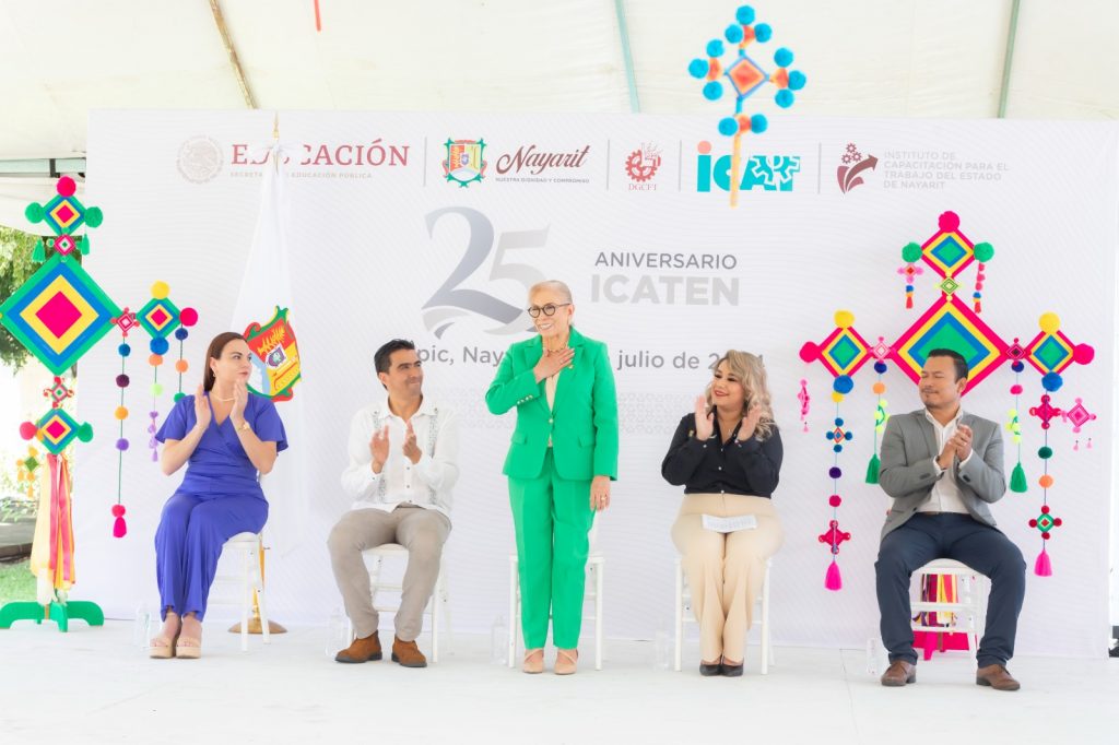 La doctora Beatriz Estrada Martínez, presidenta del Sistema DIF Nayarit, acudió como invitada especial a la celebración del 25 Aniversario del Instituto de Capacitación para el Trabajo del Estado de Nayarit (ICATEN) y la clausura de cursos julio 2024.