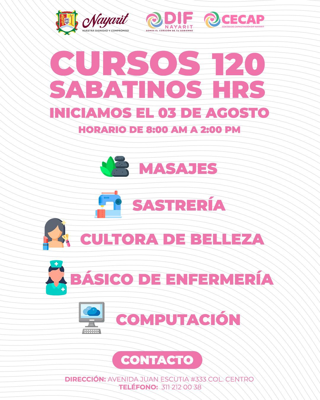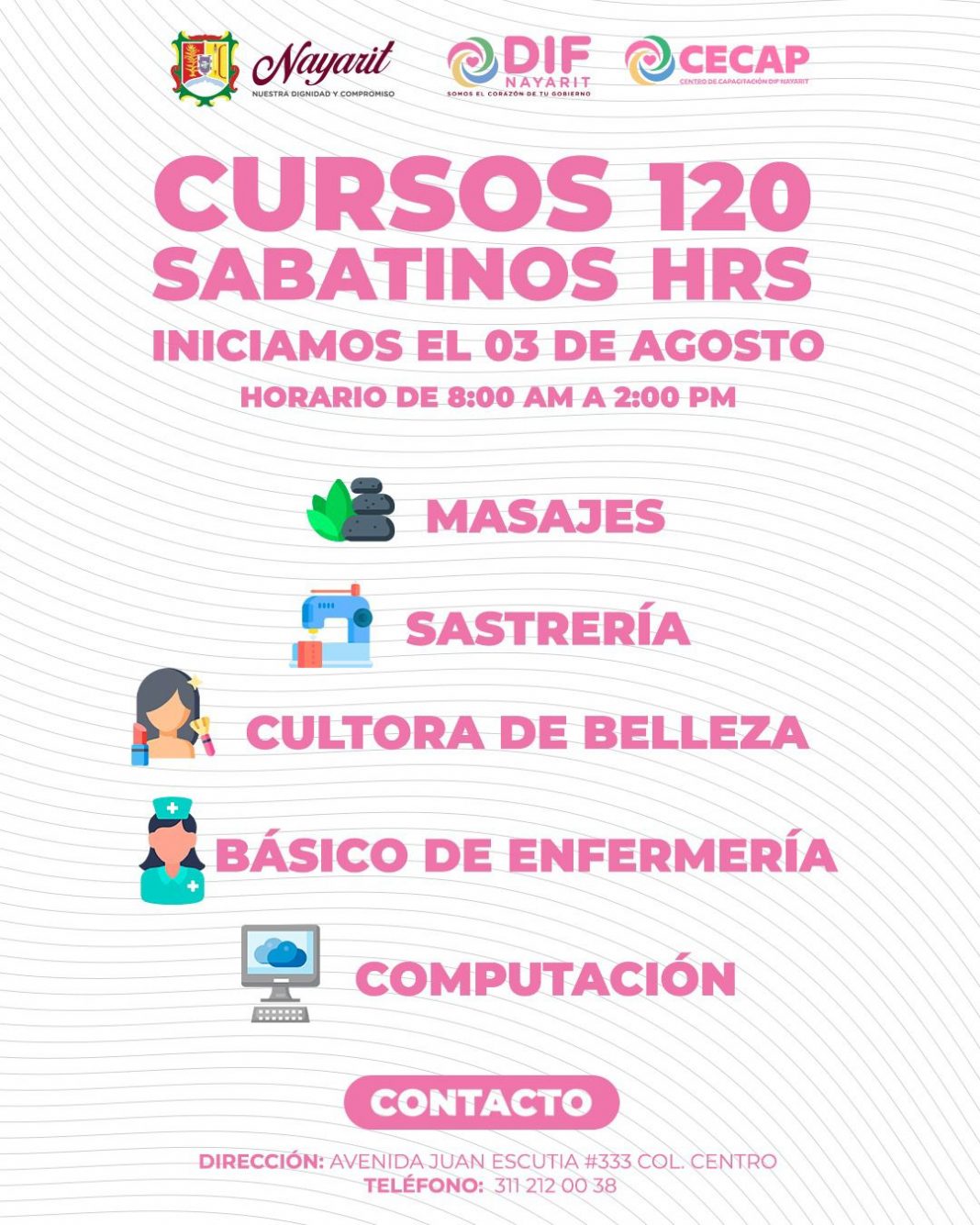 La doctora Beatriz Estrada Martínez, presidenta del Sistema DIF Nayarit, te invita a mejorar tu formación académica, y abrir nuevas puertas hacia el éxito personal y profesional, a través de los cursos sabatinos que ofrece en el Centro de Capacitación (CECAP). Conoce las disciplinas ofertadas que se ajustan a los intereses y necesidades actuales.