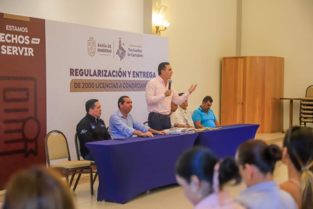 Presidente municipal de Bahía de Banderas entrega licencias y tarjetones a comerciantes