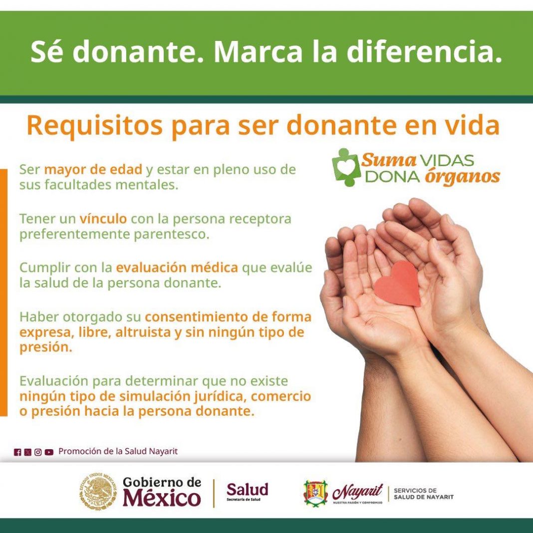 Los Servicios de Salud del Estado de Nayarit destacaron la importancia de la donación de órganos como un acto altruista que puede salvar y transformar vidas, ya que una sola persona donante puede beneficiar hasta a siete pacientes que esperan un trasplante.
