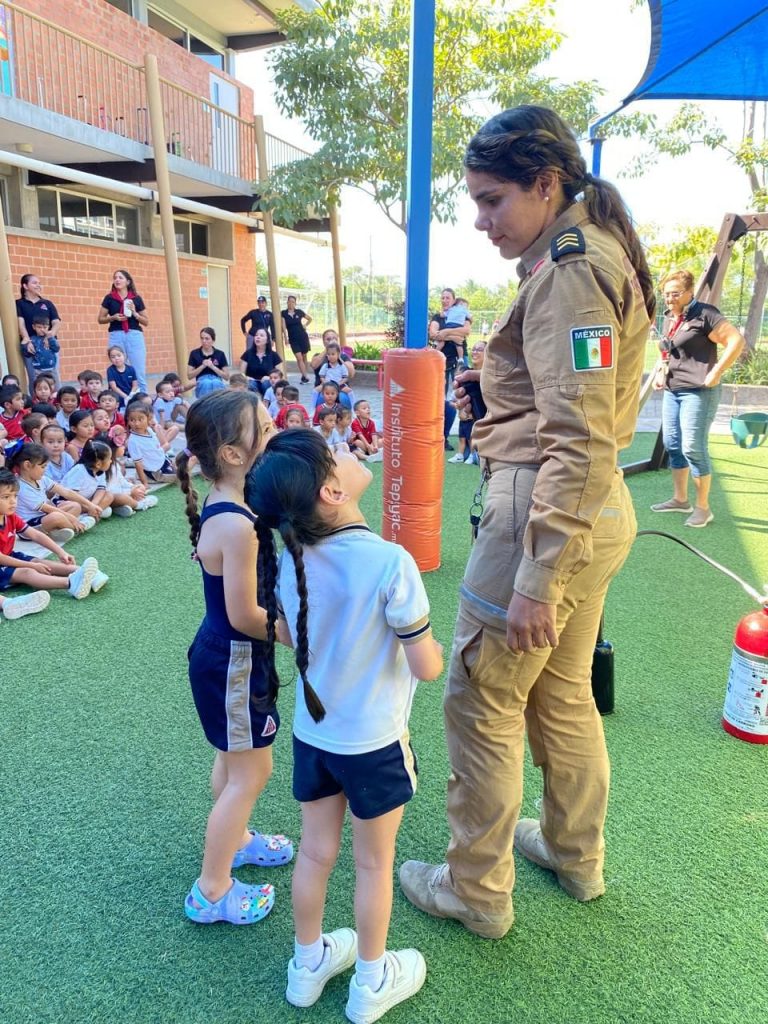 También estuvieron presentes en el Instituto Tepeyac con niños pequeños a quienes les enseñaron temas de prevención de riesgo, accidentes e incendios enfocados a su edad, contribuyendo de esta manera con la cultura de la auto protección en la población escolar.