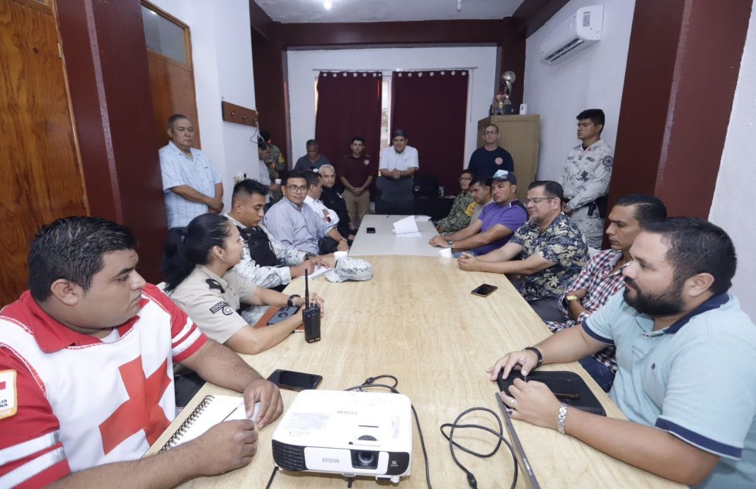 Integrantes del Consejo Municipal de Protección Civil, se reunieron para evaluar y dar seguimiento a la perturbación que se localiza frente a las costas del Pacífico y que podría convertirse en tormenta tropical, sin que hasta el momento represente riesgo de condiciones ciclónicas, y solo podría generar lluvias y tormentas en algunas zonas.