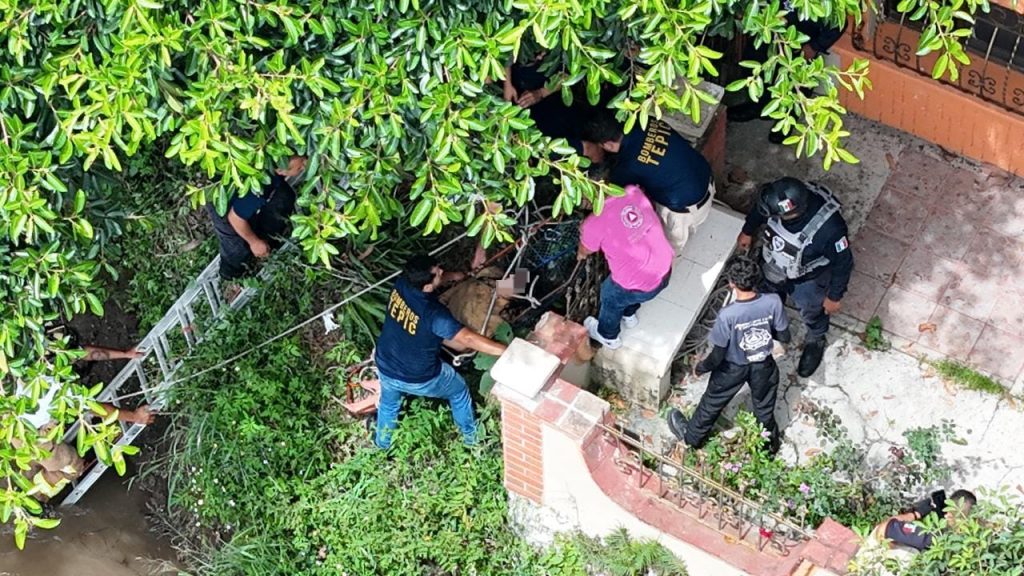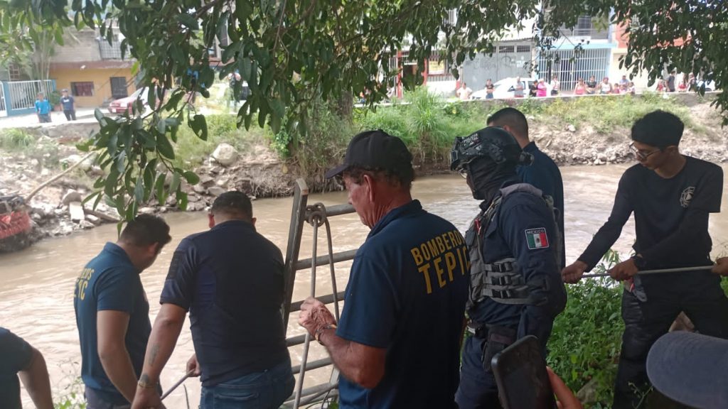 Protección Civil y Bomberos de Tepic realizaron el rescate, llevándola a una zona segura, mientras paramédicos de la Unidad Médica Táctica de la Policía Estatal brindaron atención prehospitalaria.