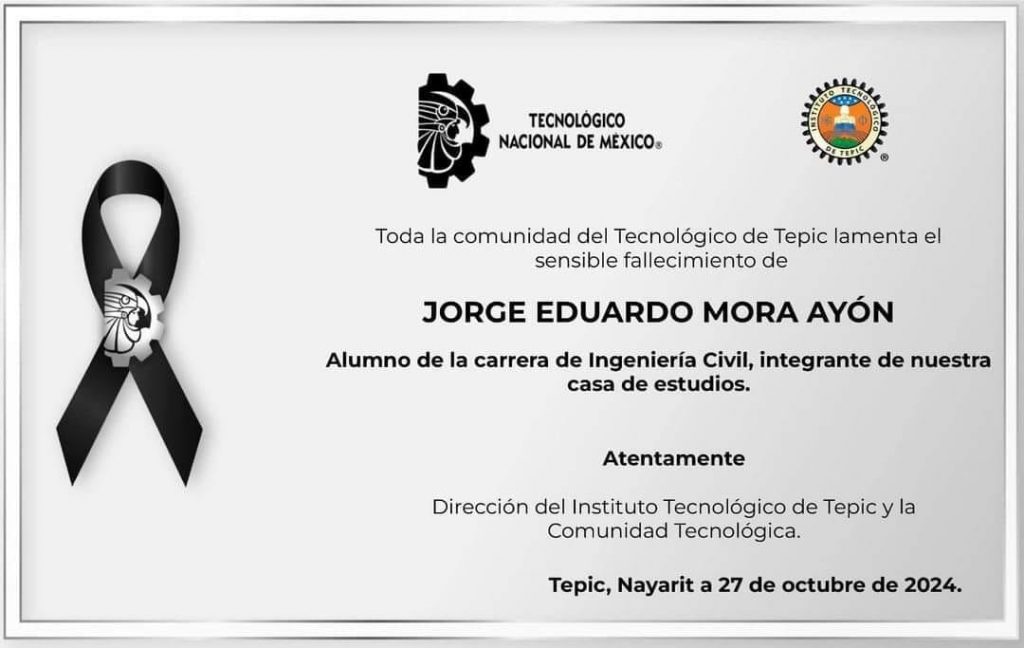 Eduardo Mora Ayón, de 20 años de edad, estudiante del TEC de Tepic, originario de Zacualpan, municipio de Compostela, es el joven motociclista que falleció en la «Rodada del Terror», mientras que su compañera, de 18 años de edad sigue luchando por su vida.