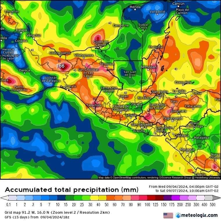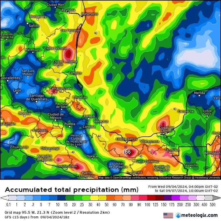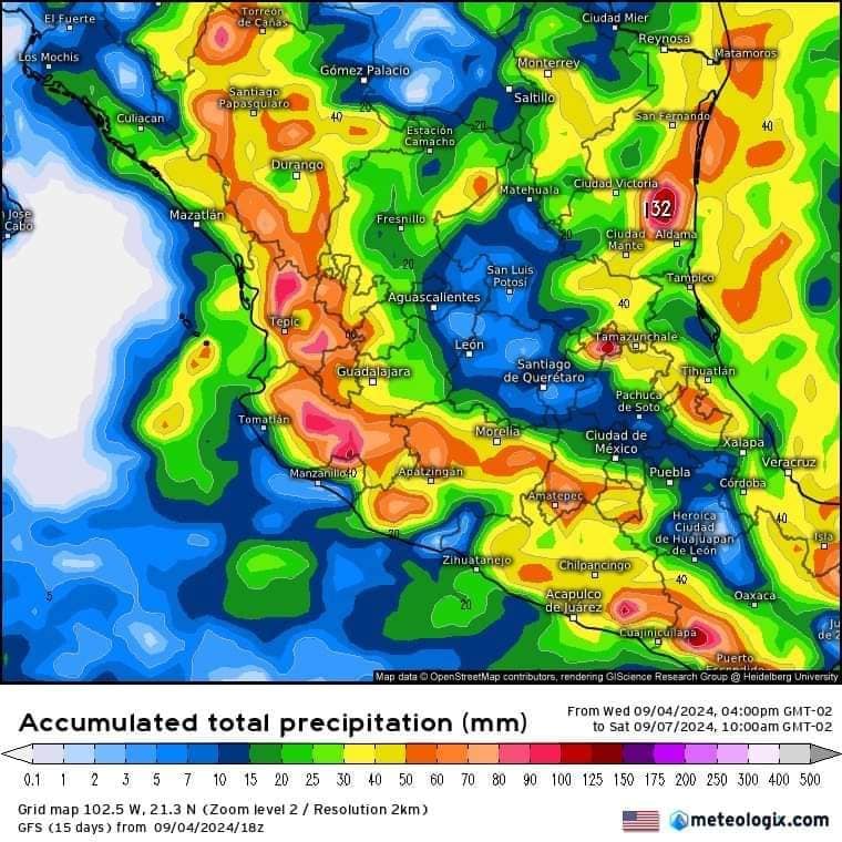 La inestabilidad se concentrará principalmente en el transcurso del día jueves y viernes en los siguientes estados: Tamaulipas, Veracruz, Nayarit, Jalisco, Colima, Michoacán, Estado de México (sur), Morelos, Guerrero, Oaxaca, Chiapas, Tabasco, Campeche, Yucatán.