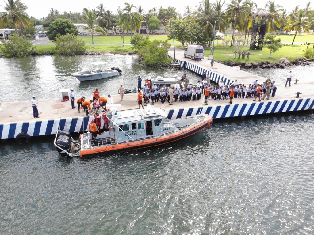 Posteriormente, se integraron a un recorrido que contempló la toma de la fotografía oficial, proyección de videos alusivos a la Armada de México, demostraciones de búsqueda, localización, marcaje de narcóticos y explosivos por parte de un binomio canino, así como una exposición de las acciones que realiza la Estación Naval de Búsqueda, Rescate y Vigilancia Marítima (ENSAR), en el muelle de la Décima Zona Naval.