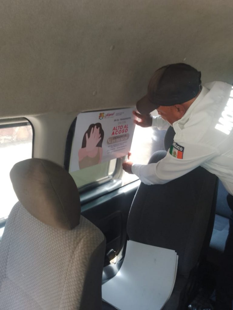 Equipos de trabajo, conformados por Policías Estatales, Municipales y Agentes de Movilidad, abordan diversos transportes públicos para compartir medidas preventivas y orientar sobre los pasos a seguir en casos de acoso. Además, se proporciona el número de emergencia 911 y el número de SEMOVI para denuncias: 311 132 5225.