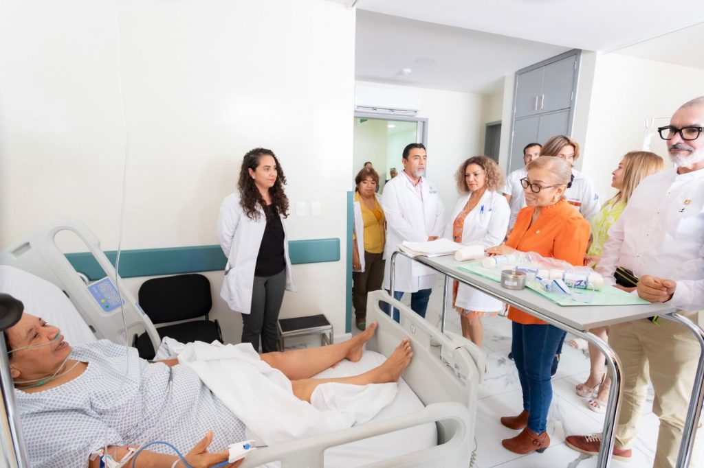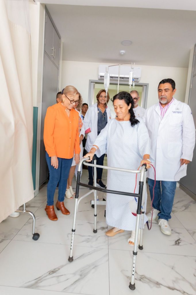 Tepic, Nayarit; 7 de agosto de 2024.- La doctora Beatriz Estrada Martínez, presidenta del Sistema DIF Nayarit, visitó en el Hospital de la Mujer, a las pacientes que fueron intervenidas de manera gratuita en la Jornada de Cirugía de Prótesis de Rodilla y Cadera, que el Corazón de Tu Gobierno está desarrollando con el apoyo de diversas instituciones de salud y médicos nayaritas.