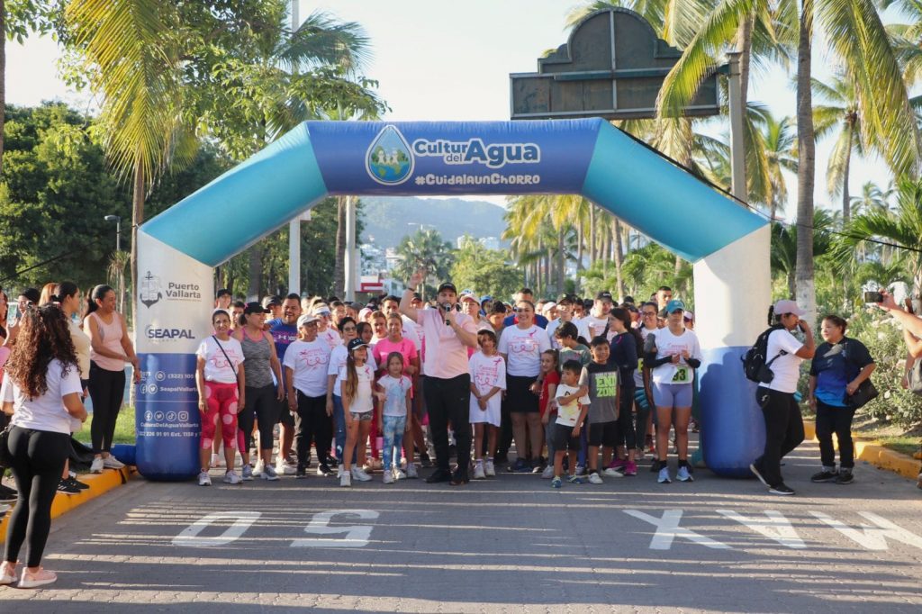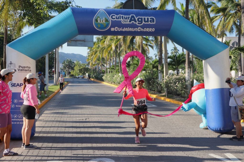 En el marco del mes de la lucha contra el Cáncer de mama, decenas de participantes se dieron cita en la explanada de la Unidad Deportiva Agustín Flores Contreras de Puerto Vallarta para recoger su kit, hacer calentamiento y en punto de las 8 de la mañana, dar inicio con la carrera.
