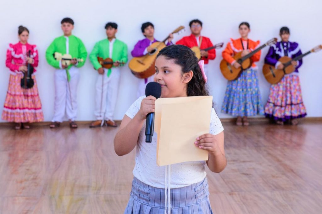 “Estoy muy feliz porque veo nuestra escuela más bonita que nunca, hasta tiene un auditorio nuevecito. Estoy muy contenta porque sé que en esta escuela voy a seguir aprendiendo a ser mejor cada día. Muchas gracias a los adultos que se preocupan por la cultura, gracias también a mis papás, por acercarme a las bellas artes y también gracias al señor gobernador, Miguel Ángel Navarro”.