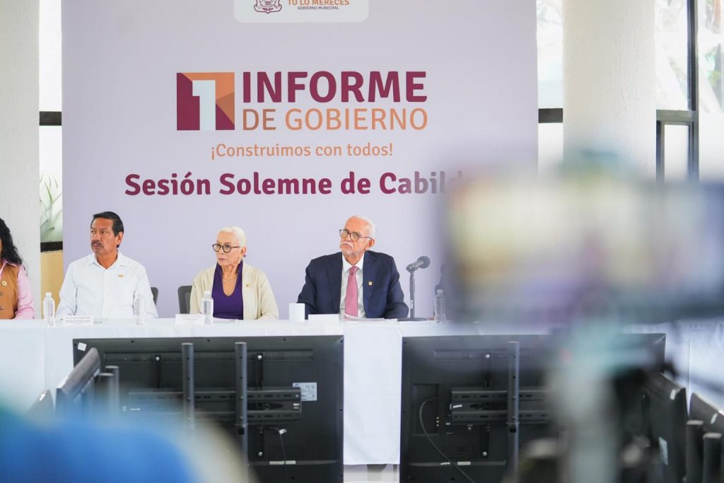 Tepic, Nayarit, 10 de noviembre de 2025.- El gobernador del estado, Miguel Ángel Navarro Quintero, junto a su esposa, la presidenta del Sistema DIF Nayarit, doctora Beatriz Estrada Martínez, asistió este lunes en el municipio de Xalisco a la Sesión Solemne de Cabildo, en la que la presidenta municipal, Anabel Margarita Guerrero Benítez, rindió su Primer Informe de Gobierno.